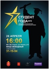 Финальное шоу, награждение победителей Тульского регионального этапа Российской национальной премии «Студент года – 2016» состоится 28 апреля в 16:00 по адресу: проспект Ленина, д.20, Молодежный Центр «Родина». За право стать «Студентом года – 2016» борются 20 студентов образовательных организаций города Тулы.